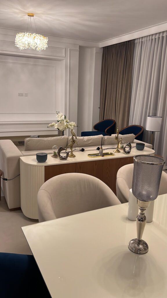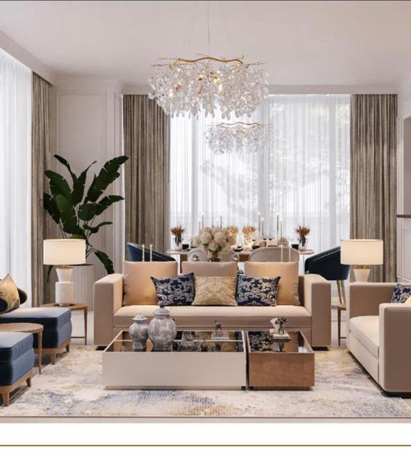 Creek Harbor Dubai Turnkey fully renovated white furniture and decor curtains: